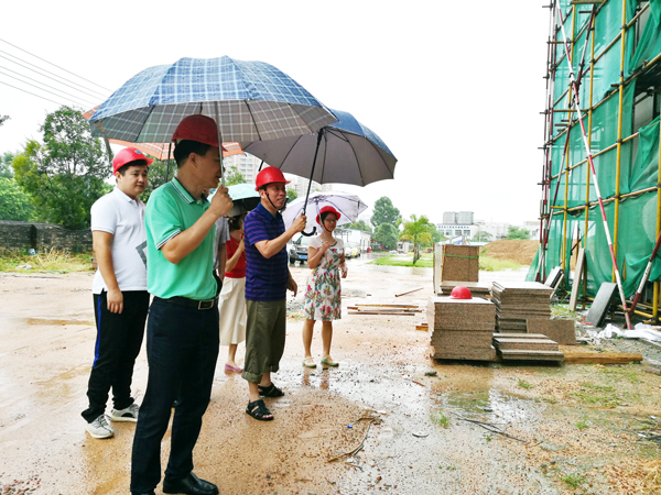 安全生產(chǎn)督查組一行詳細了解了項目建設(shè)進度,在冒雨查看了施工現(xiàn)場的安全生產(chǎn)情況后,對創(chuàng)新港項目的安全生產(chǎn)、安全施工的工作給予了肯定。傅文偉說:“安全生產(chǎn)責任重大,容不得半點馬虎,正五海產(chǎn)公司一定要敦促施工企業(yè)高度重視,完善安全警示標志,加強安全施工教育培訓?!蓖瑫r希望施工企業(yè)要加快外墻大理石安裝的施工進度,以防夏季突襲的臺風對其造成破壞和不必要的損失。
