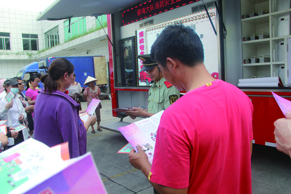 消防宣傳車一駛進公司,就吸引了眾多員工的目光, 大家紛紛圍了上來。“在日常生活中要注意不能私拉亂接電線,天冷使用電熱器、火爐取暖時要及時清理周邊的可燃易燃物?!毕廊藛T耐心地為群眾講解了家庭用火、用電安全注意事項、逃生自救口訣、家庭火災案例分析及漁船火災的預防措施等安全知識,簡單講解了火災存在的危險性、火災的燃燒特性和火災發(fā)生時的逃生自救方法。