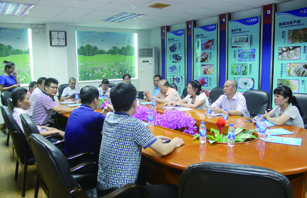 調(diào)研會上,陳啟華一行觀看了正五海產(chǎn)公司的宣傳片及公司研發(fā)的各類產(chǎn)品,詳細(xì)了解了企業(yè)生產(chǎn)流程、產(chǎn)品特性、市場行情、海洋產(chǎn)業(yè)發(fā)展等情況。源管部經(jīng)理上官云山匯報了企業(yè)在產(chǎn)業(yè)發(fā)展、基地建設(shè)、科技攻關(guān)等方面的工作情況。