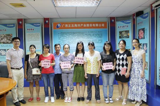 2014年8月23日正五海產(chǎn)公司召開獎(jiǎng)勵(lì)座談會(huì),對(duì)在2014年高考中取得優(yōu)異成績(jī)4名員工子女按照《職工子女考上大學(xué)本科入學(xué)獎(jiǎng)勵(lì)辦法》進(jìn)行了獎(jiǎng)勵(lì)。